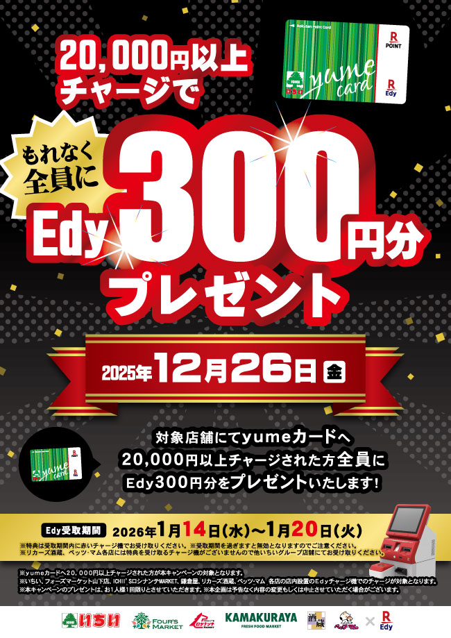 [キャンペーン]20,000円以上チャージでEdy300円分プレゼント
