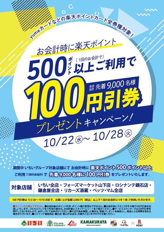 [キャンペーン]500ポイント以上ご利用で100円引券プレゼント