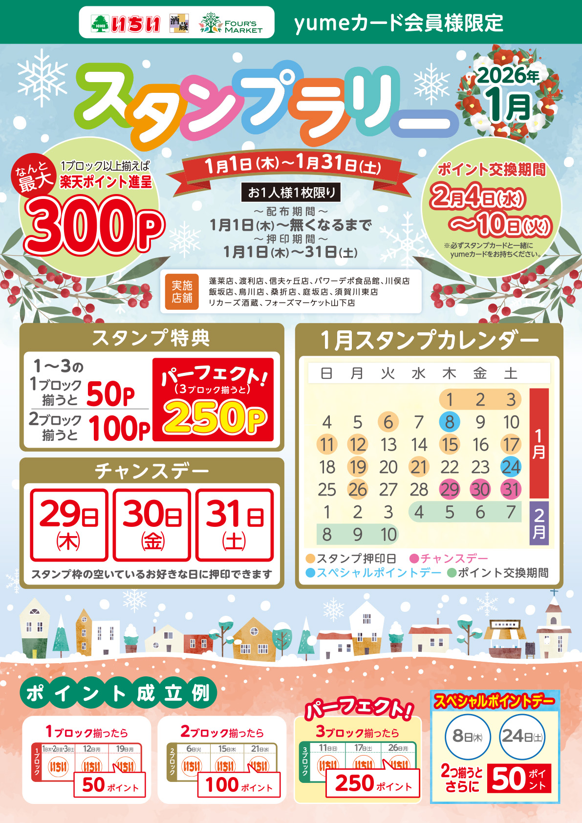 yumeカード会員様限定 1月の《 スタンプラリー 》 スタート!!