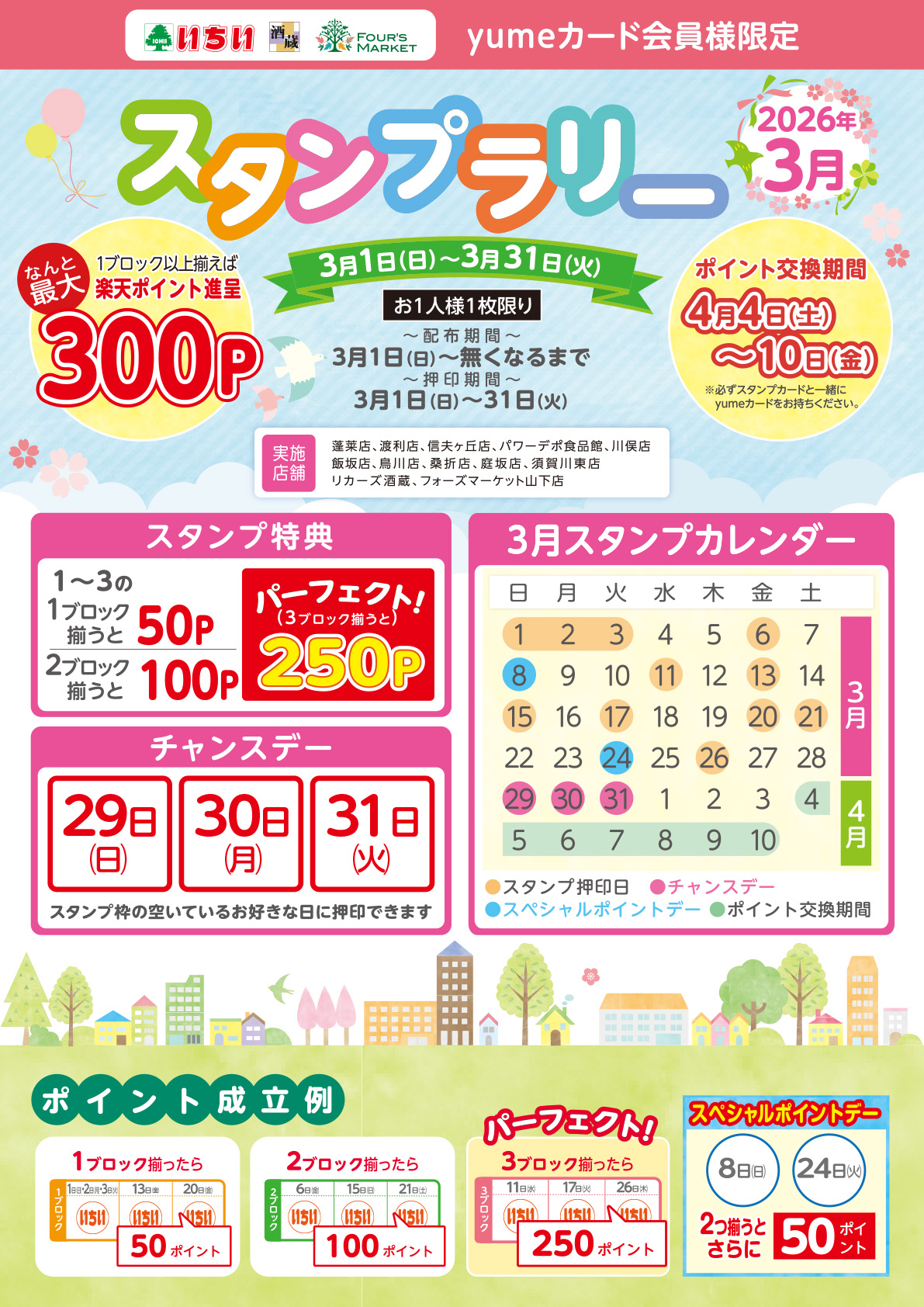 チャンスデーの3月29日・30日・31日は、スタンプの空いているお好きな日に押印できます。