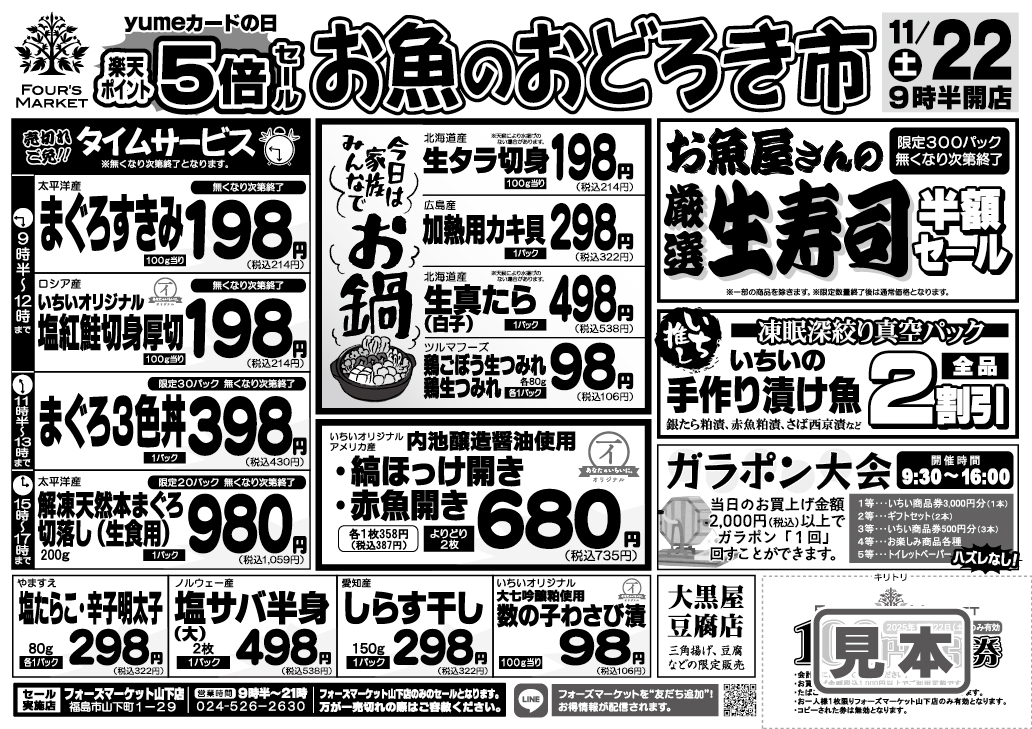 11/15 楽天ポイント5倍 ◇ 15~20 福島フェア