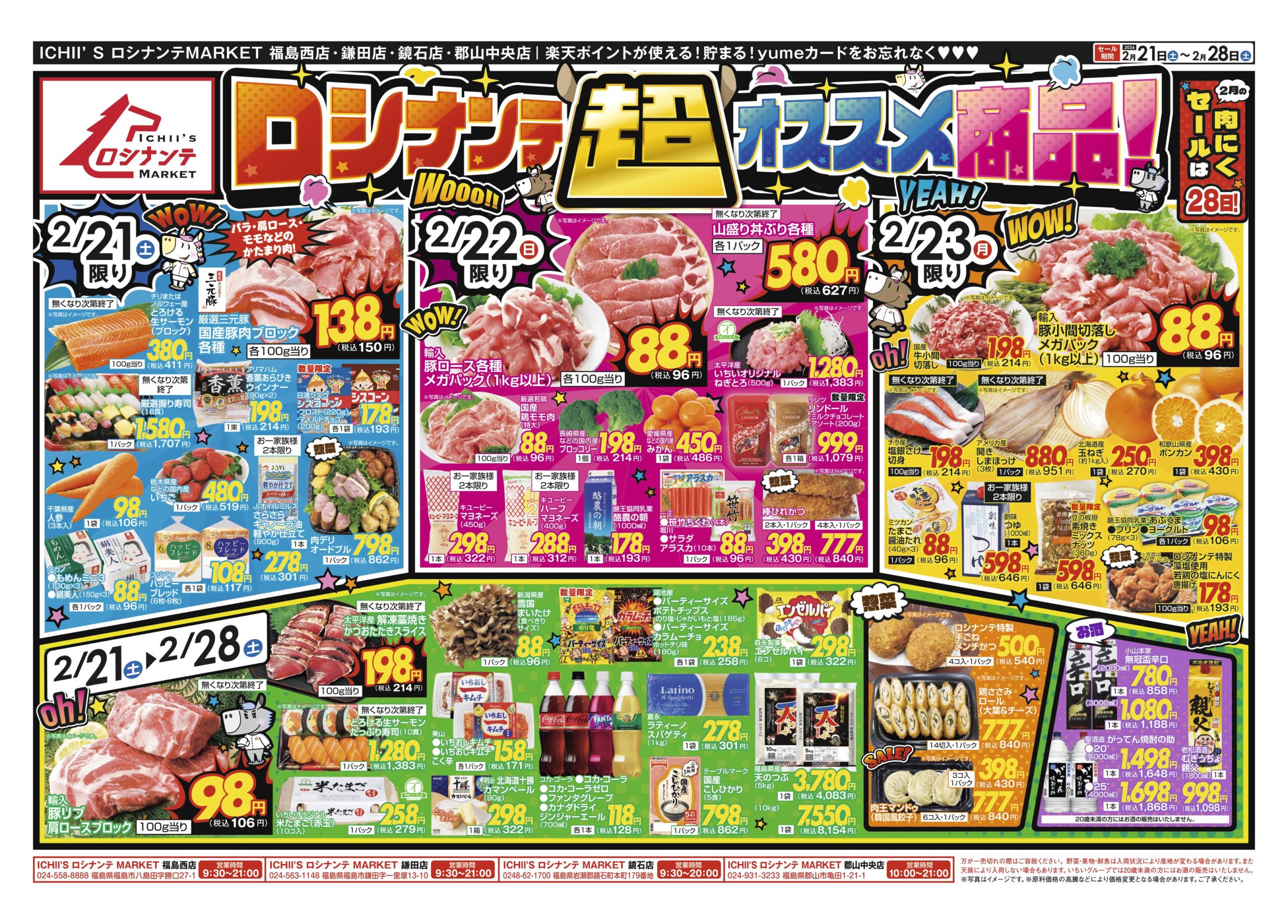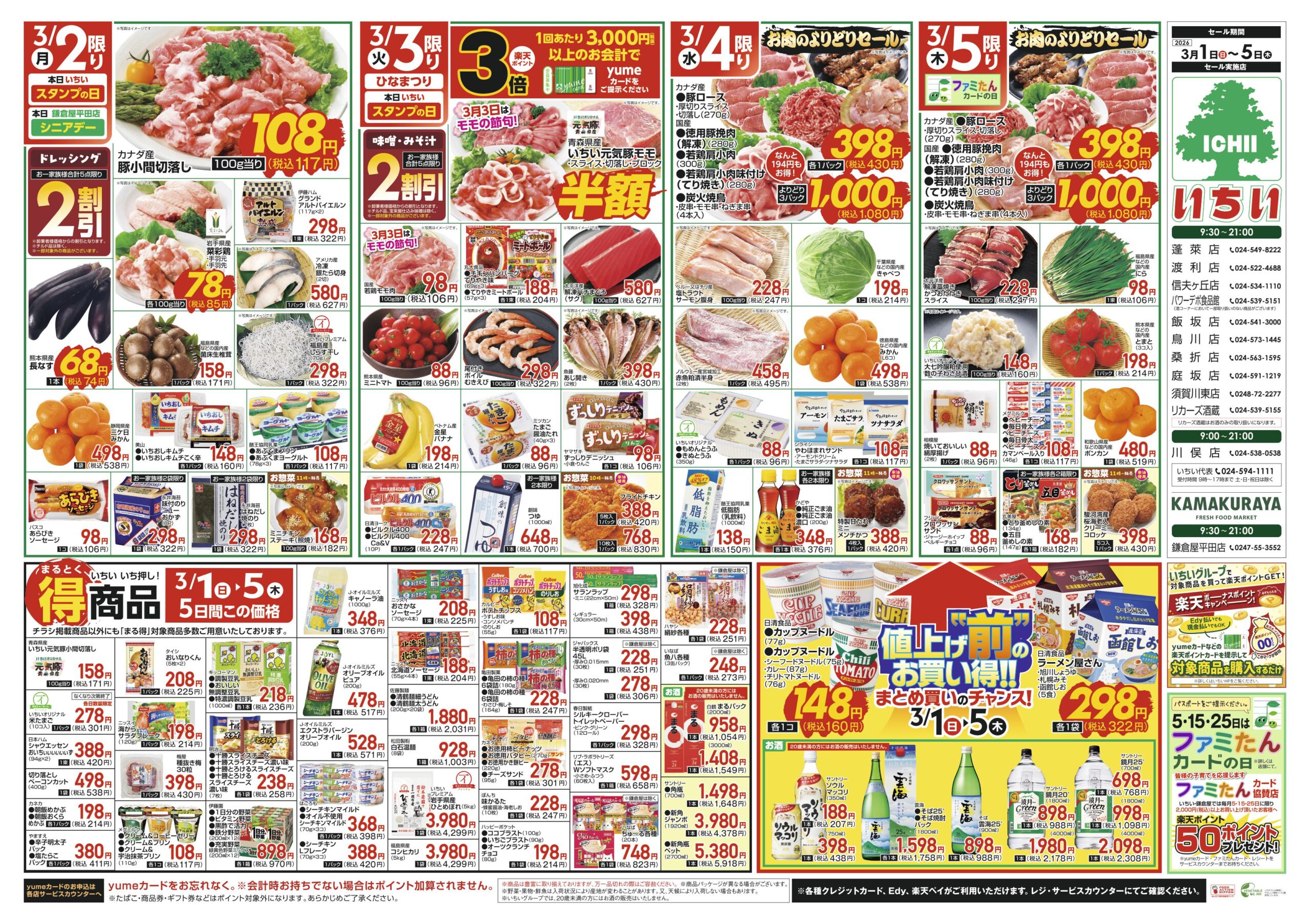 蓬萊店・渡利店・信夫ヶ丘店・パワーデポ食品館・川俣店・飯坂店・鳥川店・桑折店・庭坂店・須賀川東店