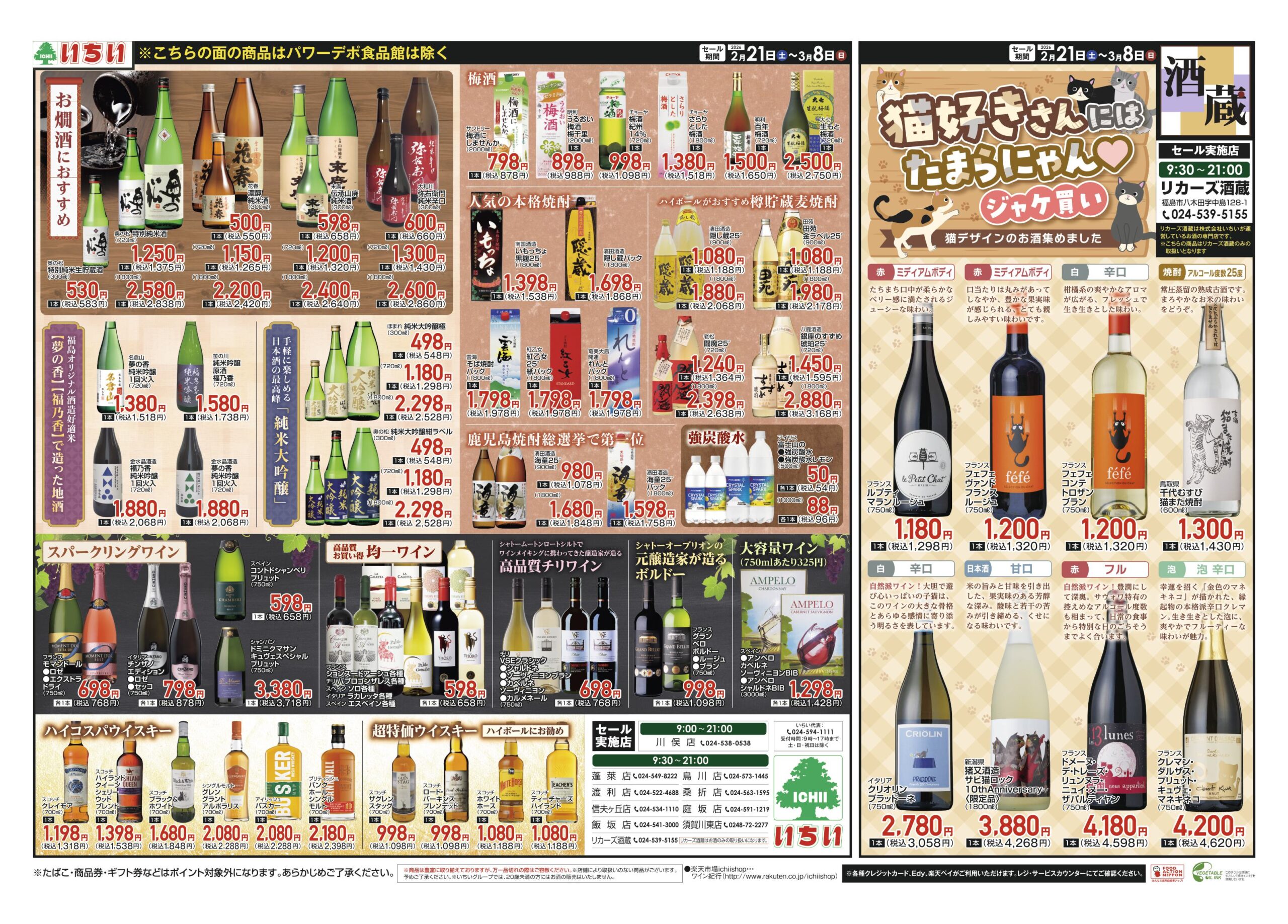 2/21~3/8 ロシナンテ超オススメ商品 ◇ リカーズ酒蔵 猫好きさんにはたまらにゃい