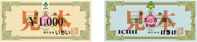 | 支払可能金額等 | 券面記載の金額の範囲内でご利用いただけます。 500円、1000円の2種類発行しております。 |